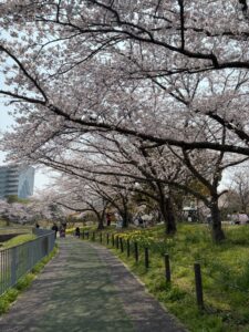 近くの細口池公園は、桜も水仙も満開です。