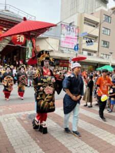 観たい芸人さんを探すうちに、大須大道町人祭りの名物の【おいらん道中】の行列にも会えて、美しい花魁に目を奪われたのでした。